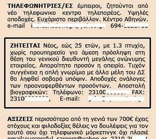 Μικρές αγγελίες με… νόημα!
