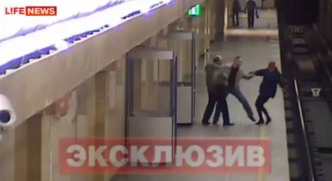 Ξαφνικά, ο ένας από τους δυο άνδρες, ο μεγαλύτερος σε ηλικία, σπρώχνει τη γυναίκα και τη ρίχνει στις ράγες! Για καλή της τύχη, δεν περνούσε συρμός εκείνη την ώρα. Αυτό έγινε λίγο μετά και όπως είπε αυτόπτης μάρτυρας "αν είχε αργήσει λίγα δευτερόλεπτα να σηκωθεί, θα την είχε πατήσει το τρένο".